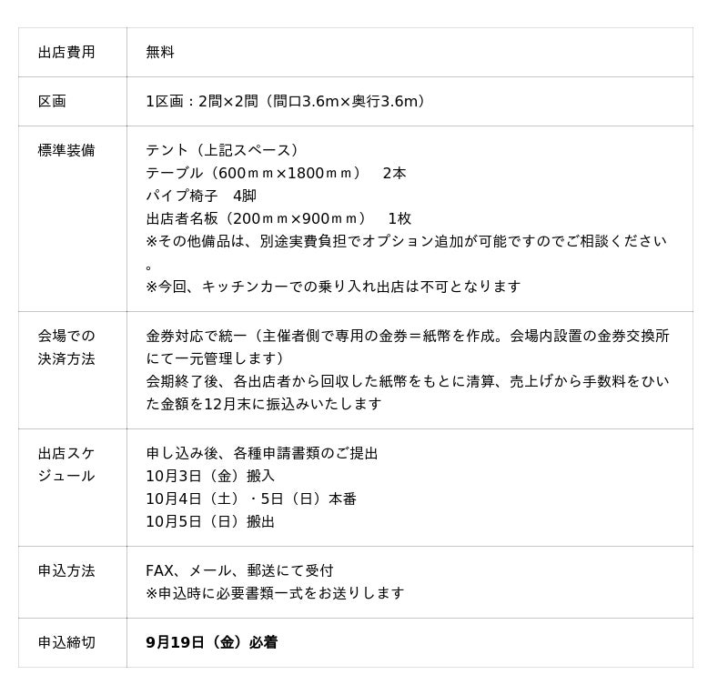 ※出店に際しての注意点などは、概要とあわせて以下の<ご案内PDF>を必ずご覧ください。