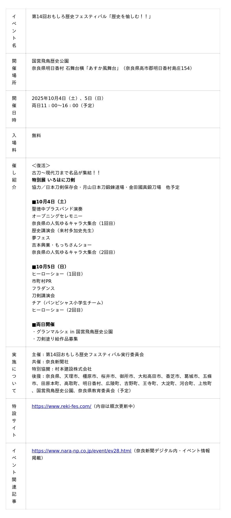 奈良新聞社企画部内「第14回おもしろ歴史フェスティバル実行委員会」EXPO宛