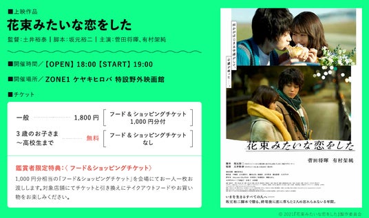 3:Hisaya cinema [9/27(土)]久屋の夜を満喫できる、野外映画上映会。園内のフードやドリンクをテイクアウトして、足を伸ばしてくつろぎながら鑑賞すれば、ここでしか味わえない特別な時間がすごせるはず。
