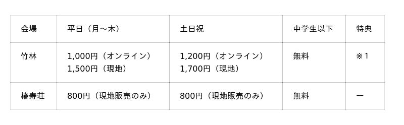 料金:高校生以上 500円、小学生~中学生 100円(未就学児は無料、保護者同伴必須)