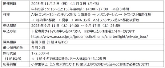 ・ ANAオリジナル商品である羽田格納庫でのプライベートツアーを11月2日(日)・11月3日(月・祝)に実施します。