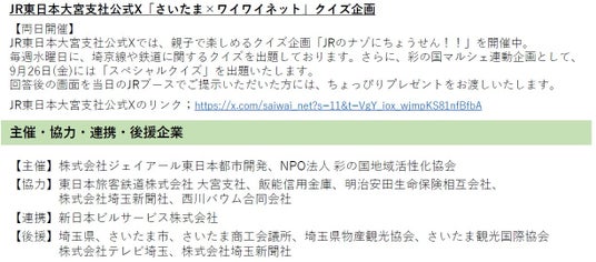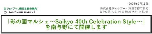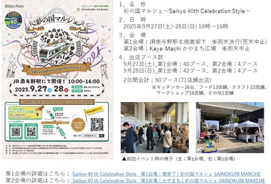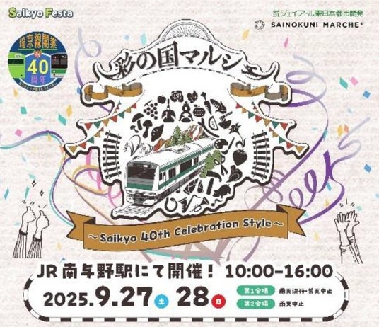 株式会社ジェイアール東日本都市開発、NPO法人彩の国地域活性化協会は、2025年9月27日(土)、28日(日)に、地域連携マルシェ「彩の国マルシェ~Saikyo 40th Celebration Style~」を開催いたします。