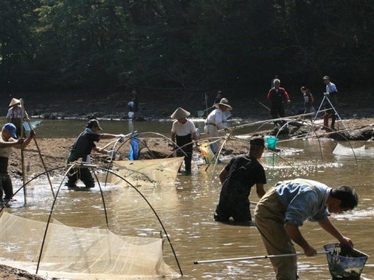滑川町の伝統的な"沼普請"の魚とりを模した「沼まつり」