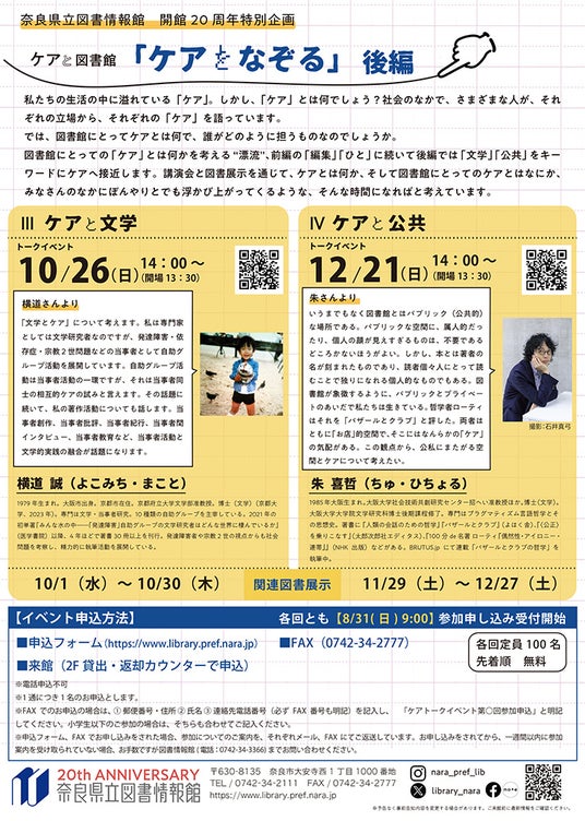 講演会と図書展示を通じて、ケアとは何か、そして図書館にとってのケアとはなにか、みなさんのなかにぼんやりとでも浮かび上がってくるような、そんな時間になればと考えています。