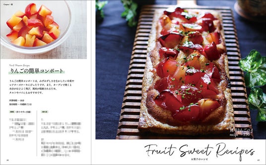 著者は、素材から作るお菓子教室Mille-Gateauxを主宰する森岡麻以さん(@michoumama)。自家製の果物加工をライフワークにしている著者が、栗の渋皮煮やマログラッセ、オレンジコンフィやマーマレード、りんごの甘煮やジャムといった「果物の加工レシピ」から、それらを使ったお菓子・ケーキまでをていねいに解説。研究者さながらの探究心で、レシピを磨き続けてきた著者による秋冬の果実仕事の極意を、ぜひ本書でご堪能ください。
