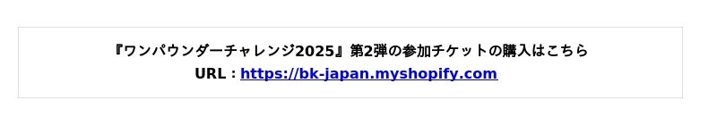 『ワンパウンダーチャレンジ2025』は事前の参加チケット購入が必要です。第2弾のチケットは9月12日(金)11時より、専用の参加チケット購入サイトにて販売を開始いたします。ご希望の店舗・日時を選択の上、ご購入ください。参加チケットの店頭での販売はございません。ご参加いただいた皆様には特典として、限定デザイン「限定ワンパウンダーTシャツ(1枚)」と「限定ワンパウンダーステッカー(1枚)」、「オリジナルステッカー(1枚)」をプレゼントいたします。