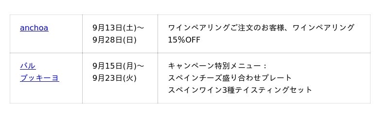 - 主催:スペイン貿易投資庁(ICEX)、各店舗