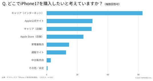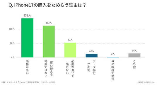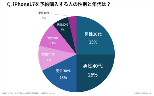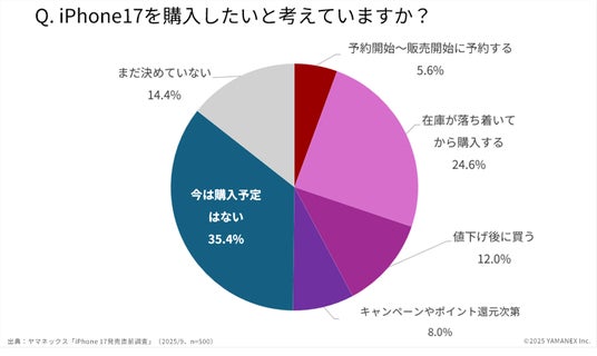 ヤマネックス株式会社(以下、ヤマネックス)は、iPhone 17 の発売を前に全国のスマートフォンユーザーを対象とした購入意向調査(有効回答 500 名、2025年9月6日~8日)を実施しました。