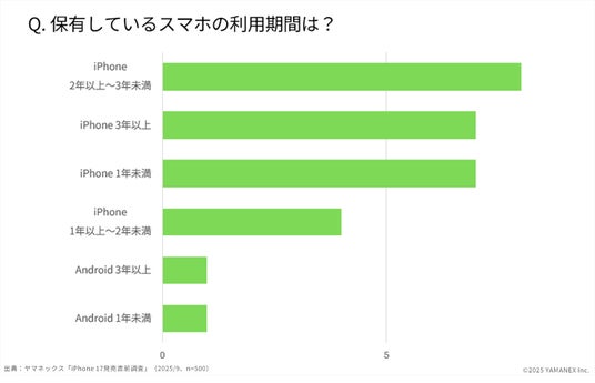 グラフ3:iPhone 17の予約購入層が保有している現スマホの利用期間について