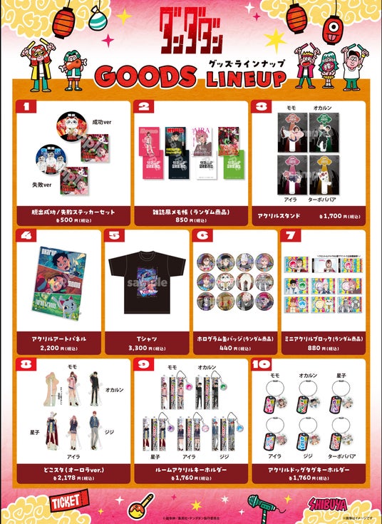「ABEMAアニメ祭」にて販売されるグッズおよびフードのラインナップも決定いたしました。グッズの参加作品に新たに『呪術廻戦』『ダンダダン』『光が死んだ夏』『僕のヒーローアカデミア』が追加に。先日発表された『GOALOUS5』『声優と夜あそび 2025』と合わせ7作品のグッズを、9月20日(土)から23日(火・祝)の「ABEMAアニメ祭」開催期間中、「MIYASHITA PARK 2F吹き抜け広場」にて販売いたします。