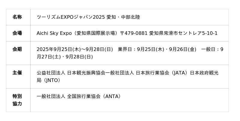 ■「ツーリズムEXPOジャパン2025 愛知・中部北陸」出展概要