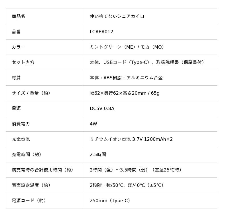 「使い捨てないシェアカイロ」LCAEA012
