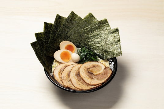 通常メニューにない、香ばしい香りととろける脂が絶品な「炙りチャーシュー」を贅沢に4枚使用し、さらに半熟味玉、うずら、ほうれん草、海苔8枚の家系トッピングの組み合わせがまさに黄金比!