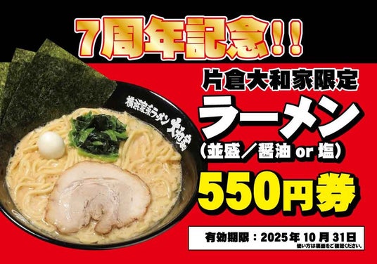 株式会社AZism(本社:東京都立川市、代表取締役会長:和田 敏典)が運営する「横浜家系ラーメン片倉大和家」は7周年を記念し、皆様へ感謝の気持ちを込めて、2025年9月27日(土)28日(日)の