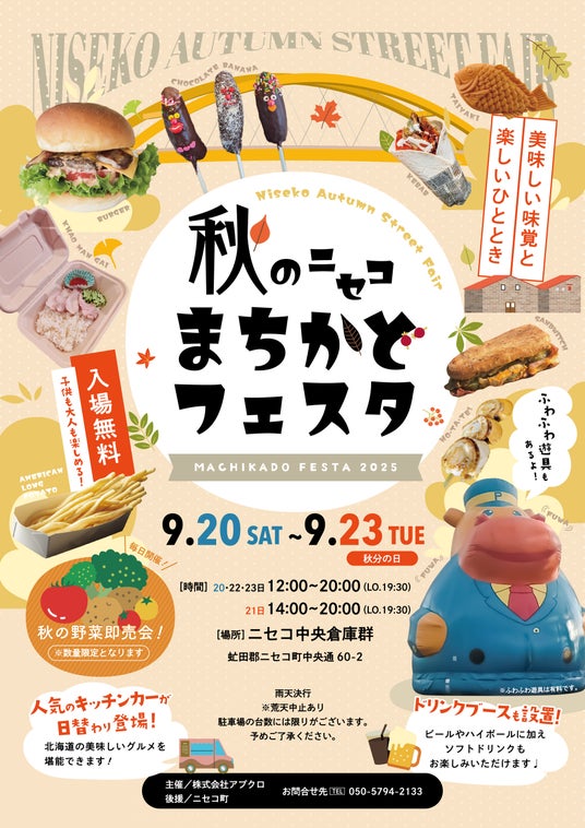 株式会社アプクロは2025年9月20日(土)~23日(火祝)の4日間に子供から大人まで楽しめるさまざまなコンテンツを提供する『秋のニセコまちかどフェスタ』を初開催いたします。