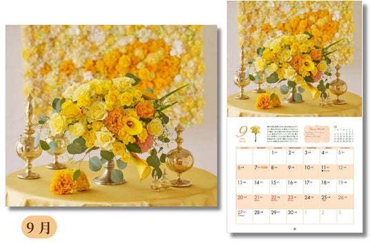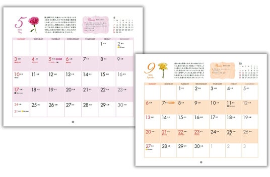 カレンダー部分には、六曜をはじめ風水で大切な「月変わり」のタイミングや、満月・新月を記載。スペースを広くとっているので、旅行などの予定もしっかり書き込めます。また、月ごとのラッキーフラワーにまつわる風水コラムや、フラワーアレンジメントに使用している花材もご紹介。自分でも同じ花を飾ったり、ラッキーフラワーの意味を意識して過ごしたりすることで、さらなる開運につながります。