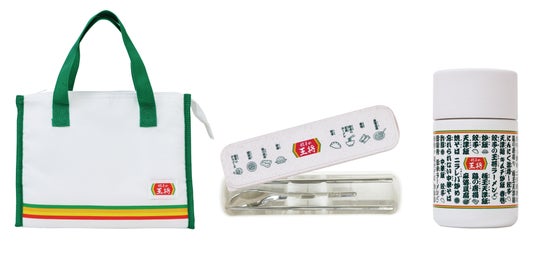 スープジャーまんぞくセット保温・保冷スープジャー(容量350ml)、箸とレンゲのカトラリーセット、保温・保冷ランチバッグがセットになった、これ一つでランチに出かけられる便利なセット。スープジャーは昨年好評だったマイボトルとお揃いのデザインで、店舗でオーダーを通す際に使用される"王将用語"のルビ入りです。