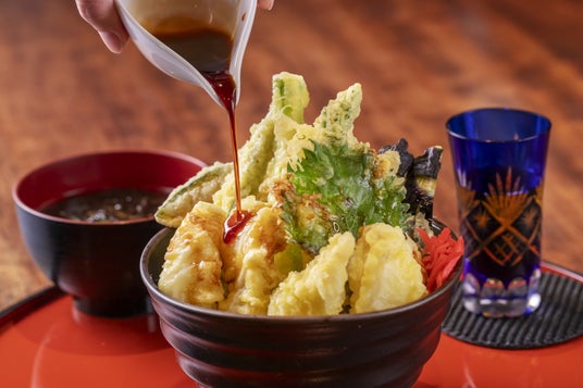 石川県は本州一の天然ふぐ漁獲量を誇る名産地。その天然ふぐを贅沢に天ぷらに仕立て、自家製天ダレで旨みを引き立てた特別な一杯です。旬の野菜天ぷらも添えられ、四季の加賀の風土を味わえる「加賀ふぐ天めし」をぜひご堪能ください。全店 2,000円(税込)