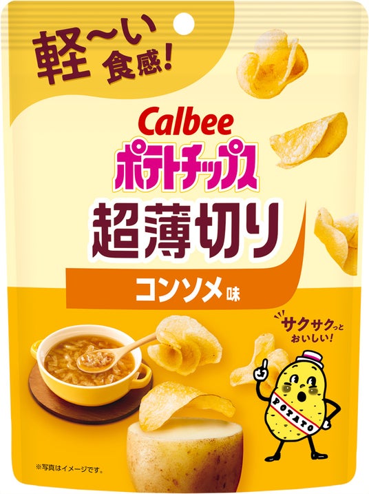 カルビー株式会社(本社:東京都千代田区、代表取締役社長兼CEO:江原 信)は、ジャガイモを極限まで薄くスライスし、サクサクっとした軽~い食感が特長の「ポテトチップス 超薄切り」シリーズから『ポテトチップス 超薄切り コンソメ味』を2025年9月22日(月)より全国のコンビニエンスストア先行で期間限定発売します。コンビニエンスストア以外の店舗では、2025年11月3日(月)より発売します(2026年1月下旬終売予定)。