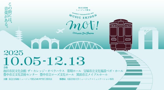 阪急宝塚線ミュージック駅伝MOT!は、阪急宝塚線沿線に点在している複数のホールや大学の施設が連携し、音楽を軸とした場をリレー形式で「駅伝」のようにつなぎ、沿線の音楽文化の魅力を創出することを目的としたプロジェクトです。10月5日(日)から12月13日(土)の期間中、参加各ホールが主催する公演と、その間をつなぐフリンジイベントで、阪急宝塚線沿線の音楽文化を盛り上げます。【開催概要】