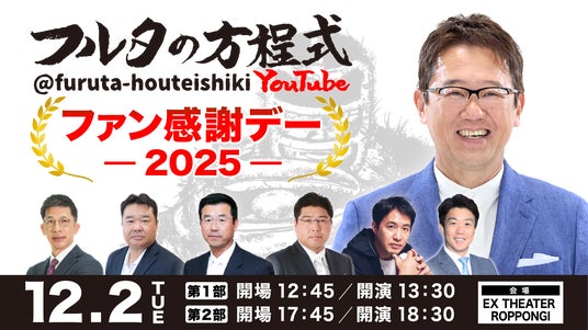 ついに「フルタの方程式」初のイベントを開催することになりました。タイトルは『フルタの方程式 ファン感謝デー2025』。12月2日、EX THEATER ROPPONGIで昼・夜2部制でお届けします。