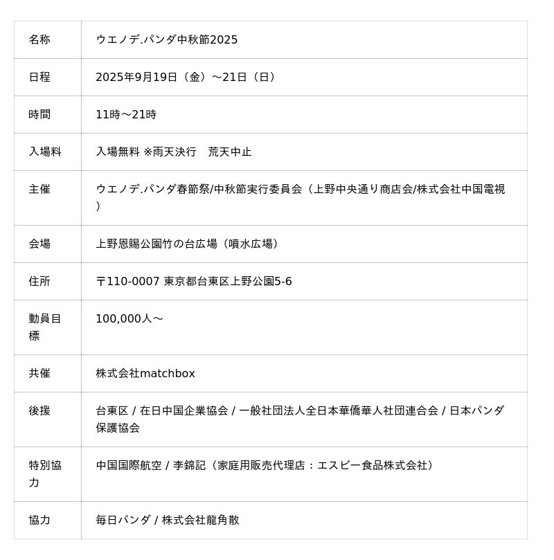 2025年9月19日(金)20日(土)21日(日)の3日間、上野でパンダと中秋節をお祝いしましょう!