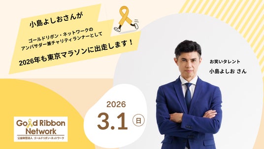 公益財団法人ゴールドリボン・ネットワーク(所在地:東京都豊島区 理事長:磯中 淳)は、お笑いタレントの小島よしおさんを、今年に引き続いて東京マラソン2026(2026年3月1日開催予定)チャリティのマラソンアンバサダーおよびチャリティランナーに決定しました。小島よしおさんがゴールドリボン・ネットワークのアンバサダー兼チャリティランナーとなるのは2年連続2回目となります。