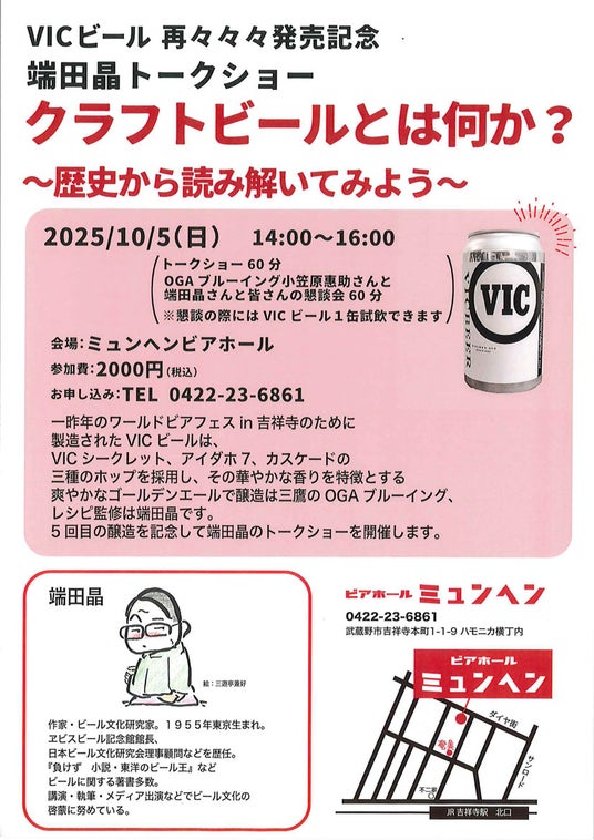元サッポロビール広報で恵比寿麦酒記念館館長も勤め、日本ビール検定(通称びあけん)の顧問を長年務めた端田晶さんが監修する「VICビール」を、数量限定で販売します。