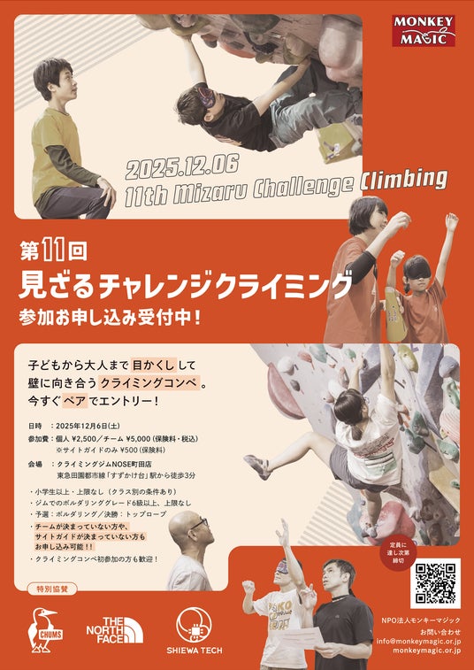 このたび、全員がアイマスクを着用して挑戦するユニークなクライミングコンペティション、第11回『見ざるチャレンジクライミング』を2025年12月6日(土)に開催します。