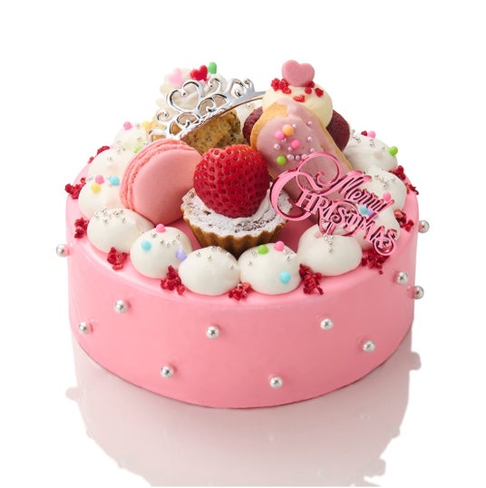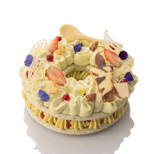 ピンクとハートが大好きなお姫様が食べるアフタヌーンティーをイメージしたケーキ。マカロン、いちごタルト、スコーンなどのお菓子が乗った乙女心がくすぐられる見た目。中にはベルガモット風味のホワイトチョコムースと爽やかなベルガモットジュレ、濃厚なピスタチオのババロア、アクセントとしてパールクラッカンが入っています。