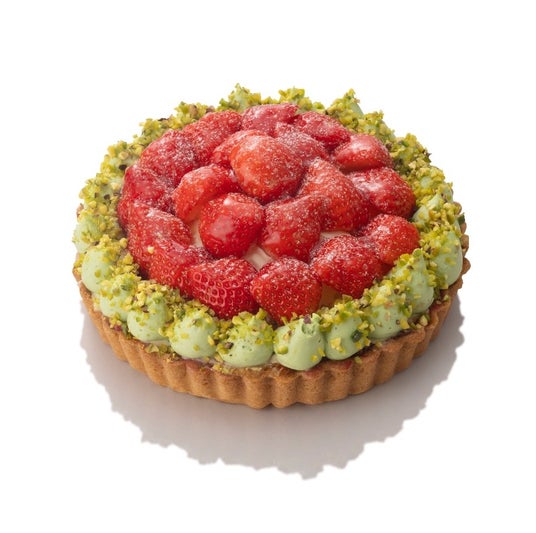 あまおう苺を贅沢にあしらい、ピスタチオとマスカルポーネのムースが織りなすハーモニーが格別なおいしさを演出するケーキ。さらに、アールグレイが香る特製タルト生地が、全体の味わいを上品にまとめています。