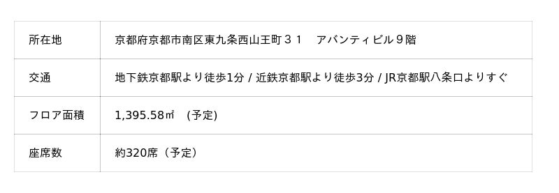 野村不動産株式会社(本社:東京都港区/代表取締役社長:松尾大作、以下「野村不動産」)と株式会社タオ・エンターテイメント(本社:福岡県福岡市/代表者取締役社長:藤高郁夫、以下「タオ・エンターテイメント」)は、エンターテインメント事業に取り組む合同会社を設立※2すると共に、この合同会社と株式会社JTBコミュニケーションデザイン(本社:東京都港区/代表取締役:藤原卓行、以下「JCD」)の間で包括的業務提携を締結することで、各社のリソースとノウハウを結集し、エンターテインメント領域における新たな事業創出を行うことに合意しました。なお、野村不動産コマース株式会社(本社:東京都港区/代表取締役社長:鵜沼孝之、以下「野村不動産コマース」)は、野村不動産から業務委託を受け、事業推進の役割を担います。また、本事業の拠点として、野村不動産は京都駅前の施設アバンティビル内のホールを取得しております。