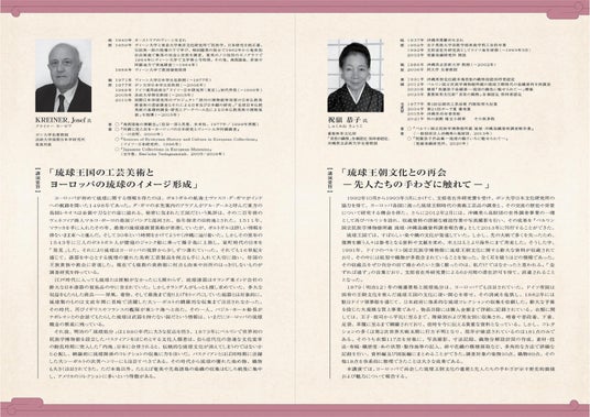 本講演会では、ヨーロッパで収集された琉球関連の文化財に焦点を当て、4名の専門家に収集の経緯や文化的背景、美術工芸品としての価値などについてご講演いただきます。また講演会場内では祝嶺恭子氏の復元作品を展示、1階エントランスにて、世界各地に所在する琉球・沖縄関係資料の分布を示すマップや、調査時の写真、調査資料の一部を紹介いたします。