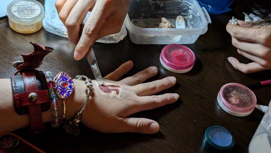 棺桶をモチーフに薔薇や十字架をあしらったゴシック・アクセサリー、肌にやさしい本格的なキズメイク体験、魔力を宿したような「魔法雑貨」や「宝石」、さらにはクラシカルな陶器アクセサリーなど、ヴァンパイアの世界観を味わえる品々が揃います。