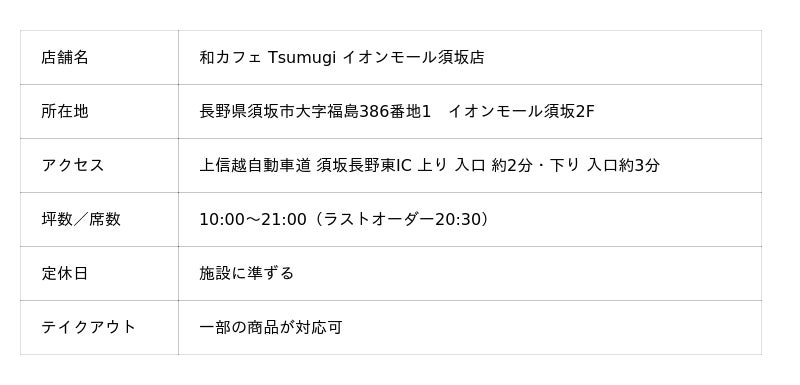 長野県最大級の大型商業施設内に『和カフェ Tsumugi イオンモール須坂店』がオープン!10/3(金)