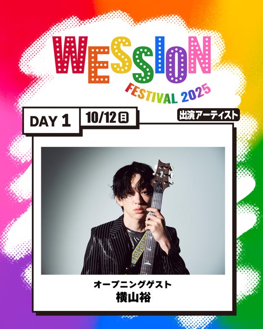 10月12日(日)、13日(月・祝)に大阪・万博記念公園で開催されるWEST.初の主催フェス「WESSION FESTIVAL 2025」。12日(日)のオープニングゲストとして、横山裕と石原慎也(Saucy Dog)が出演することに決まった。さらに、本イベントのタイムテーブルも公開。ステージではWEST.メンバーが出演アーティストとセッションすることも決まっており、イベント当日にどういった"WESSION"が生まれるのか、ご期待いただきたい。「WESSION FESTIVAL 2025」のオフィシャル最終先行抽選は9/23(火・祝)までイープラスで受付中。チケット情報の詳細はオフィシャルホームページをチェック。