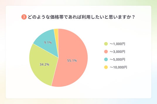 3. 価格としては手軽な1,000円未満を選んだ人が34%である一方、3,000円までは払うと応えた人が50%以上おり、関心は高いと考えられます。