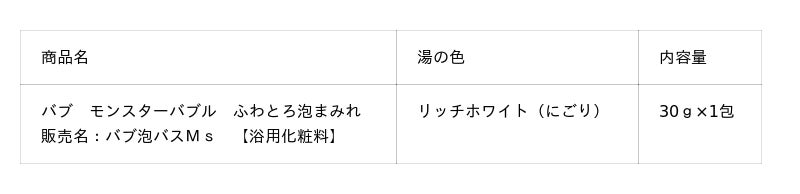 そこで、「バブ モンスターバブル」シリーズから、初となる泡風呂タイプの入浴剤を発売します。粉末タイプの新処方で、ふわとろな泡が湯面いっぱいに広がります。また、保湿成分(CICA成分※・ヒアルロン酸・コラーゲン)を配合。ホワイトムスクの香りが広がり、目で見て、触れて、香って楽しめる贅沢な入浴体験を実現しました。入浴に求める目的が多様化する中、新感覚のバスタイムを提供します。