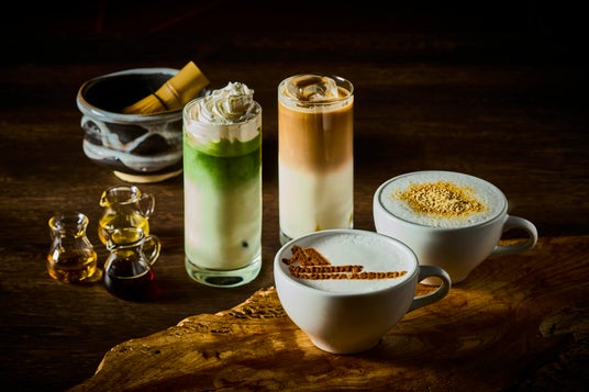 温かなカプチーノとカフェラテに加えて、ほろ苦い抹茶ラテにホイップクリームを浮かべた季節限定「アイス宇治抹茶ラテ」、お好みのフレーバーシロップでつくる「アイスフレーバーカフェラテ」をご用意しました。