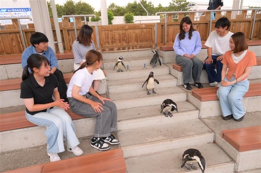 水族館「ふれあいラグーン」で実施している「アニマルパフォーマンス~ふれンDo!タイム~」では、ケープペンギン・コツメカワウソ・ハリスホーク・オタリア(アシカの仲間)などが登場し、生態を活かして、さまざまなパフォーマンスを披露いたします。パフォーマンス中では、複数種の生きものたちが同時に登場し、認知能力、飛行方法などの違いを実際に間近でご覧いただきながら、それぞれの生きものが生息環境やくらしによって得たその種特有の能力や特性をご紹介しております。