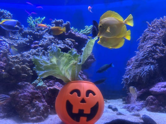 水族館「アクアミュージアム」では、カボチャに見立てた容器に入ったエサを生きものたちへプレゼントする企画「カボチャフィーダー」を時間不定期で開催いたします。