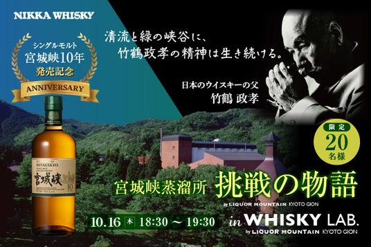 全国に197店舗で酒の専門店をチェーン展開する株式会社リカーマウンテン(本社:京都市)は、2025年10月16日(木)にバー「WHISKY LAB.KYOTO GION(ウイスキーラボ キョウト ギオン)」にて、ニッカウヰスキーブランドセミナー「宮城峡蒸溜所 挑戦の物語」を開催いたします。