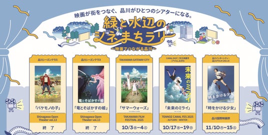 一般社団法人 高輪ゲートウェイエリアマネジメント(所在:東京都港区、代表理事 小沼 智子)、NTT都市開発株式会社(本社:東京都千代田区、代表取締役社長 池田 康)、日鉄興和不動産株式会社(本社:東京都港区、代表取締役社長 三輪 正浩)、一般社団法人天王洲・キャナルサイド活性化協会(所在:東京都品川区、代表理事 三宅 康之)、は、4会場連携した共同企画「緑と水辺のシネまちラリー~映画でつながる品川~」を9/6(土)より開催しております。