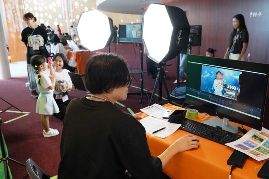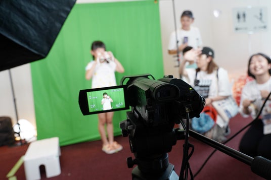 また、予約不要のグリーンバックを用いた撮影体験は、複数あるテンプレートの背景シーンから好きな画像を選択し、CGで合成された映像を見ながら演技していただきます。撮影した映像は二次元バーコードでお持ち帰りいただけます。