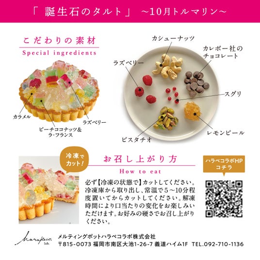 「ArtなFoodであそぶ」をテーマにプロダクトを展開するメルティングポットハラペコラボ株式会社(所在地:福岡県福岡市、以下 ハラペコラボ)から、10月の誕生石を寒天菓子で表現したアイスケーキ【誕生石のタルト~10月トルマリン~】が数量限定で登場。公式オンラインストアにて2025年9月19日(金)正午より20台限定で販売開始いたします。