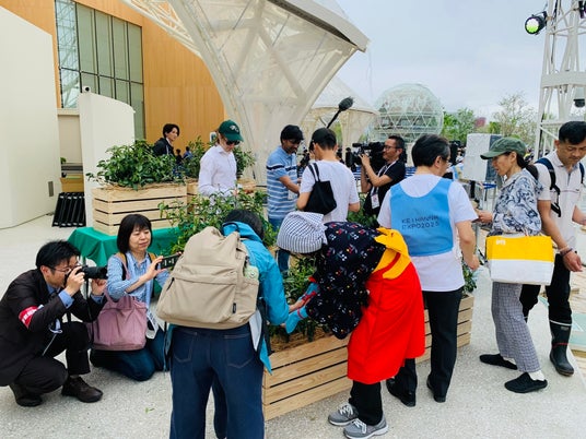 地元の茶農家にもご協力いただき、実際に会場内にお茶の葉がついた枝を持ち込んで、来園した方々に茶葉の手摘み作業をご体験いただきます。また今回の試みは耕作放棄地の解消や間伐材の活用といった、地域創生・循環型社会に向けた取り組みの一貫でもあります。宇治茶の主産地「和束町」のお茶の葉を、万博会場内で間近に見られる貴重な機会。ぜひ会場を訪れていただき、800年続く日本のお茶文化や和束町の魅力に触れてください。