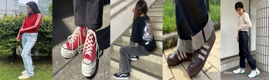 つまり、ハイテクスニーカーやトレンド性のあるスニーカーを主に選ぶ人でも『やっぱり、これが一番!』と、原点回帰のように戻ってくる人も多くいます。それほどローテクスニーカーは、一足持っているだけでスタイリングの幅を大きく広げ、クラシックなデザインを生かしたコーディネートのベースアイテムとして長く活躍します。シンプルで無駄のない設計だからこそ、足元から全体の印象を整え、自分らしいスタイルを自然に表現できます。
