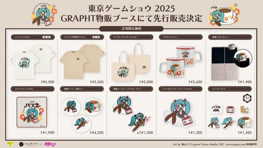 さらに初音ミクは、2025年8月に開催された初音ミク「マジカルミライ 2025」OSAKA・TOKYO会場で先行販売した『初音ミク Art by 亀山』の各種アイテムを、東京ゲームショウ2025のGRAPHT物販ブース(9-11 Hall 物販コーナー内)にて会場限定価格で販売いたします。