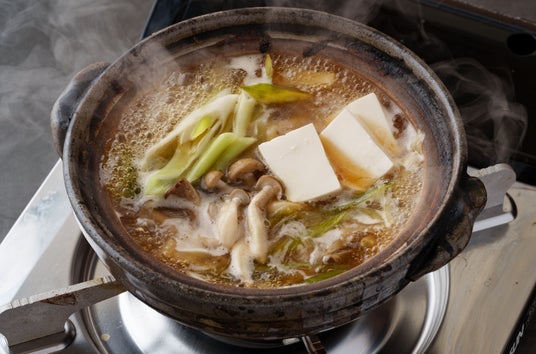 山本屋では、味噌煮込みうどんをより美味しく召し上がっていただくために、特注の土鍋を使用しています。特注の土鍋は強い火で一気に煮込むことで、ひび模様「貫乳」が入り、使うほどに味わいが深まります。また、土鍋の蓋には穴が開いておらず、通常の取り皿よりも熱々の状態で食べられるよう工夫されています。