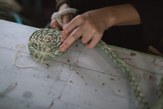 オリーブの枝に七島藺を編み込んで自分だけのバスケタリーを作ります(写真はイメージです)